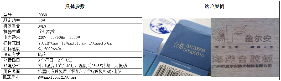 麥修拓特色SUNIN TECHNOLOGY9060二氧化碳激光噴碼機(jī) 采用優(yōu)質(zhì)材料、合理配置、性價(jià)比最高; 運(yùn)用精湛精確的技術(shù),適用各種生產(chǎn)環(huán)境,設(shè)備穩(wěn)定是最終目標(biāo); 傾力打造精品激光噴碼機(jī),滿足市場(chǎng)和客戶需求,以做世界上最好的激光噴碼機(jī)為動(dòng)力,開拓創(chuàng)新。9060二氧化碳激光噴碼機(jī)特點(diǎn) 麥修拓二氧化碳激光噴碼機(jī)采用了美國原裝進(jìn)口激光器,先進(jìn)的偏振鏡系統(tǒng),確保了優(yōu)異的噴碼質(zhì)量和高速度輸出。整個(gè)激光系統(tǒng)集成了觸摸界面、感應(yīng)電眼和升降托架。結(jié)構(gòu)設(shè)計(jì)精巧和緊湊,因此可在狹小的空間方便安裝。產(chǎn)品適合中小企業(yè),產(chǎn)品線相對(duì)較慢的客戶。產(chǎn)品主要用于日化、食品、飲料、醫(yī)藥等中低速噴碼。