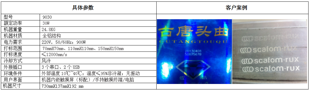 麥修拓軟件9030二氧化碳激光噴碼機(jī) 麥修拓二氧化碳激光噴碼機(jī)采用了美國(guó)原裝進(jìn)口激光器,先進(jìn)的偏振鏡系統(tǒng),確保了優(yōu)異的噴碼質(zhì)量和高速度輸出。整個(gè)激光系統(tǒng)集成了觸摸界面、感應(yīng)電眼和升降托架。結(jié)構(gòu)設(shè)計(jì)精巧和緊湊,因此可在狹小的空間方便安裝。產(chǎn)品適合中小企業(yè),產(chǎn)品線相對(duì)較慢的客戶。產(chǎn)品主要用于日化、食品、飲料、醫(yī)藥等中低速噴碼。9030二氧化碳激光噴碼機(jī)特點(diǎn)*高質(zhì)量打標(biāo)效果 *體積小巧,安裝靈活 *紅光定位,功能強(qiáng),無(wú)需維護(hù)的CO2激光標(biāo)識(shí)系統(tǒng)*采用直觀軟件,操作簡(jiǎn)易快速,易于用戶使用 *嵌入式WINDOWS CE系統(tǒng),安全、穩(wěn)定、快速