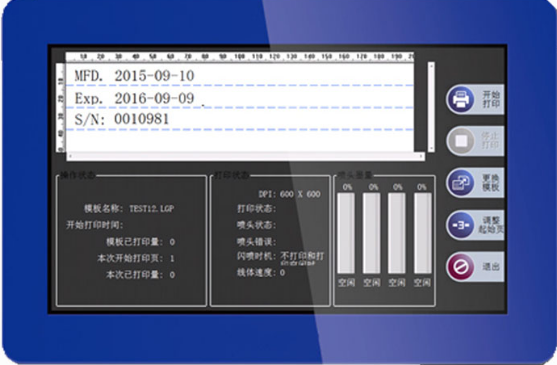 7寸觸摸屏的操作界面使得操作人員能輕易使用系統(tǒng)集成度高,體積小、部件少、安裝維護(hù)簡單全金屬外殼,工業(yè)化設(shè)計(jì),更堅(jiān)固采用HP原裝驅(qū)動(dòng)板,打印質(zhì)量更高無線噴頭認(rèn)證技術(shù),更可靠、更智能